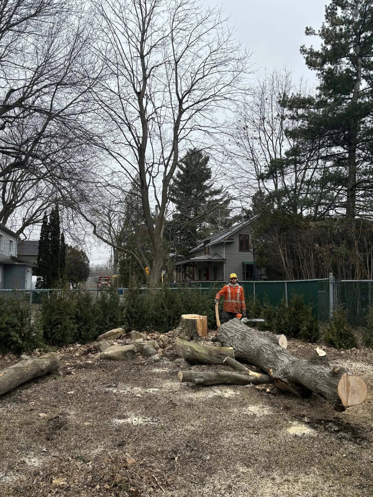 "Excellent service d'abattage. Un gros arbre mort menaçait notre maison et ils l'ont enlevé de façon sécuritaire. Très professionnel!"